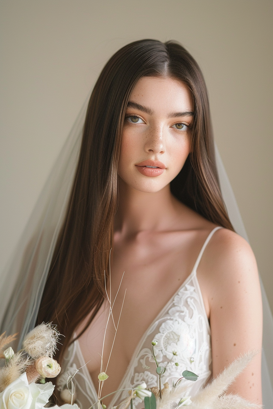 Hairstyles that add width, softness, and movement will naturally complement your features. When your proportions are balanced, your entire bridal look feels more effortless, more natural, and more refined.
